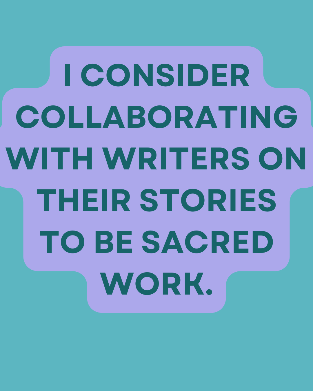 I believe in collaboration. I believe in tuning into your vision and voice and offering feedback accordingly. I want to set you up for your writing process and own writing identity (that you can carry forward with you), for your project's best outcome and your future pitch!