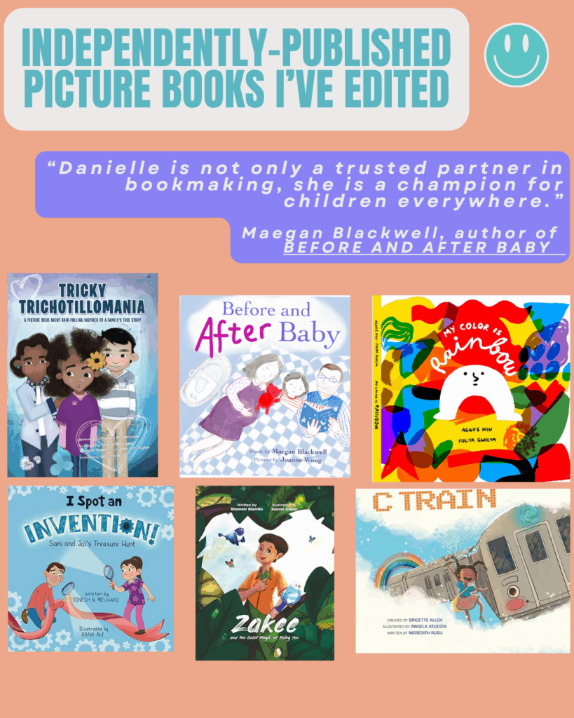 If you're creating a picture book you plan to publish yourself, I might be a fit as editor! This can look like developmental editing in the early stages of shaping a project and getting it down, and/or editing the existing manuscript at every step of the way until it's a print-ready galley!